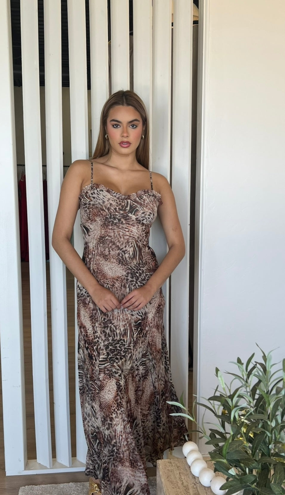 Turn heads with the ASTR The Label Maeryn Dress in Taupe Brown Leopard. This playful dress combines bold leopard print with a flattering silhouette, perfect for adding a wild touch to your wardrobe. Whether you're out for brunch or dancing the night away, its comfortable fit and eye-catching pattern make it a fun and fierce choice.