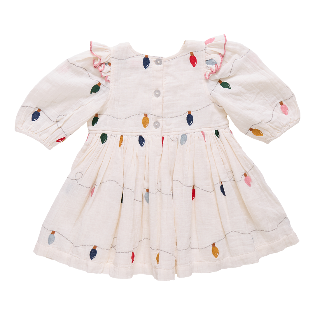 Dress your little one in holiday cheer with the Pink Chicken Christmas Lights Embroidery Brooke Dress. Featuring festive embroidery of twinkling Christmas lights, this playful dress adds a magical touch to any celebration.