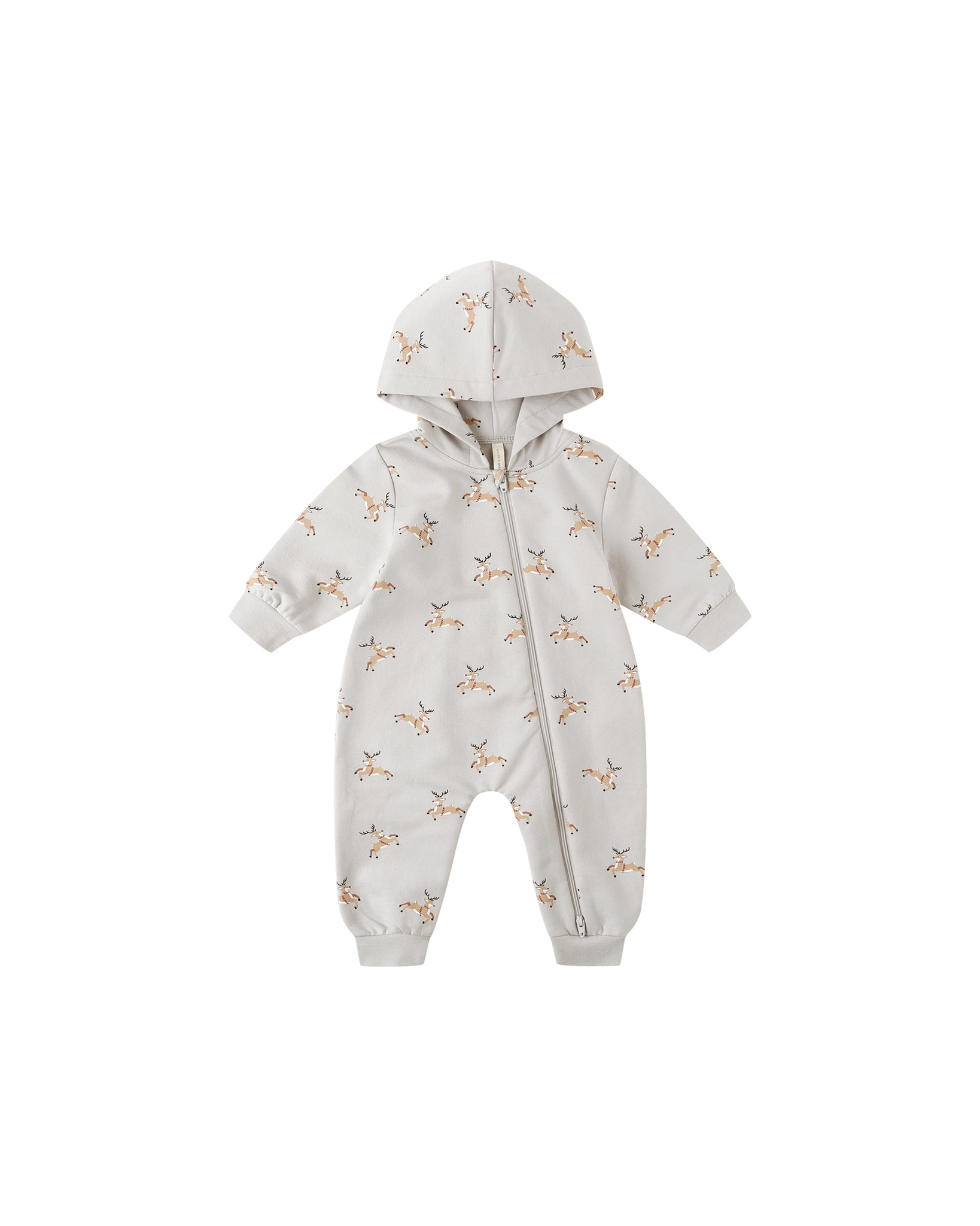 Keep your little one cozy and cute this holiday season with the Quincy Mae Hooded Jumpsuit in a festive reindeer design. Soft, snuggly fabric and an easy-zip front make dressing a breeze, while the adorable hood adds extra warmth and charm.