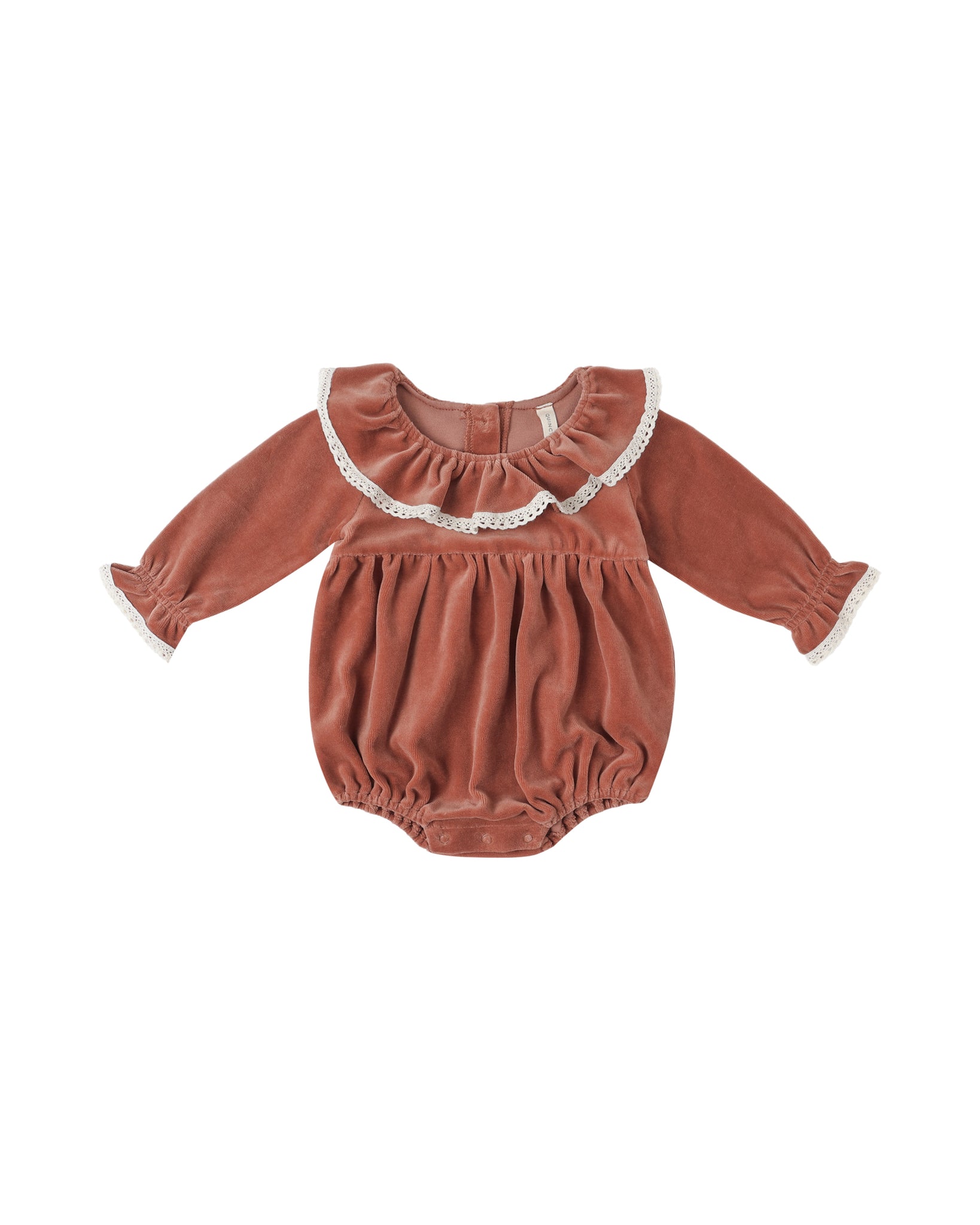 Dress your little one in the Quincy Mae Wendy Romper in vibrant cranberry for a cute and comfy look. Made with soft, breathable fabric, this romper keeps your baby cozy and ready for playtime adventures.