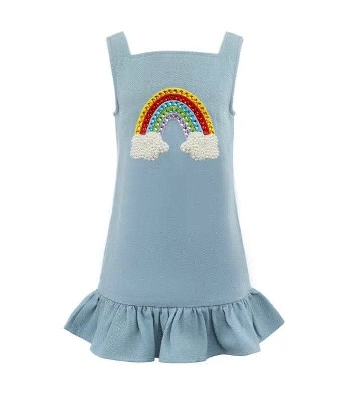 Brighten her wardrobe with this charming denim dress from Lola + The Boys. Featuring playful rainbow gem embellishments that catch the light, this piece combines classic denim durability with fun, eye-catching style. Perfect for everyday wear or special occasions, the dress offers comfortable fit and timeless appeal that grows with her. A versatile staple that pairs easily with sneakers, sandals, or boots.