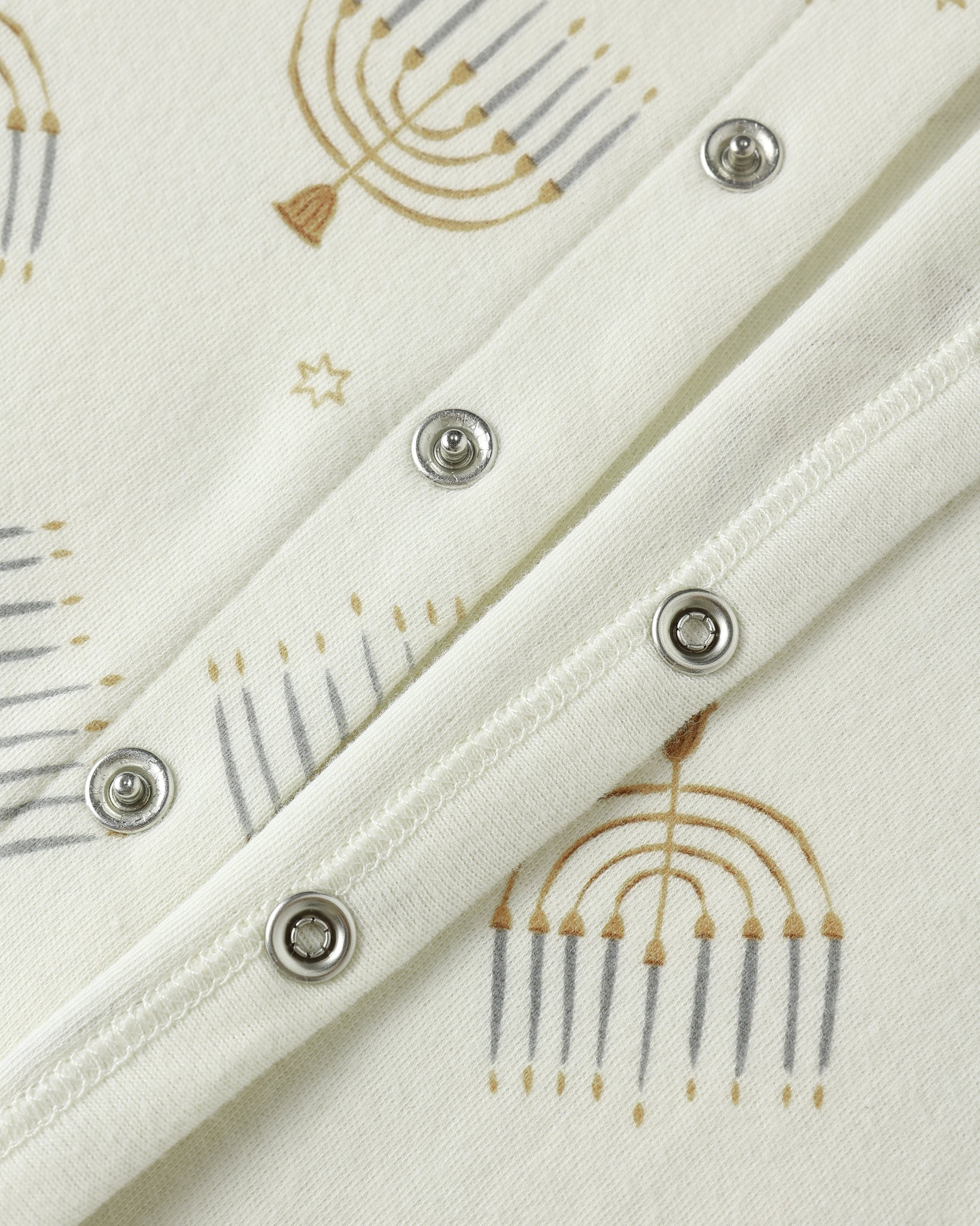 Celebrate the Festival of Lights in cozy style with the Rylee + Cru Organic Long John Pajamas. Made from soft organic cotton, these playful Hanukkah-themed pajamas keep kids comfy during chilly nights and holiday celebrations.
