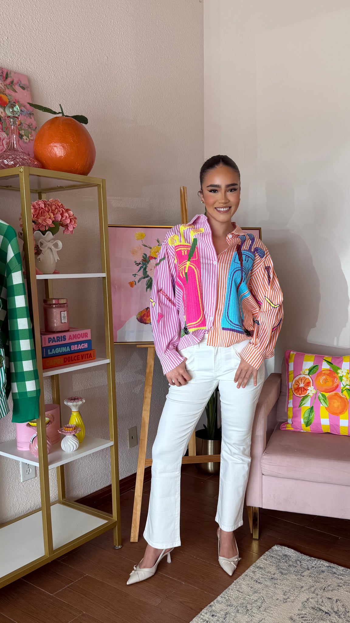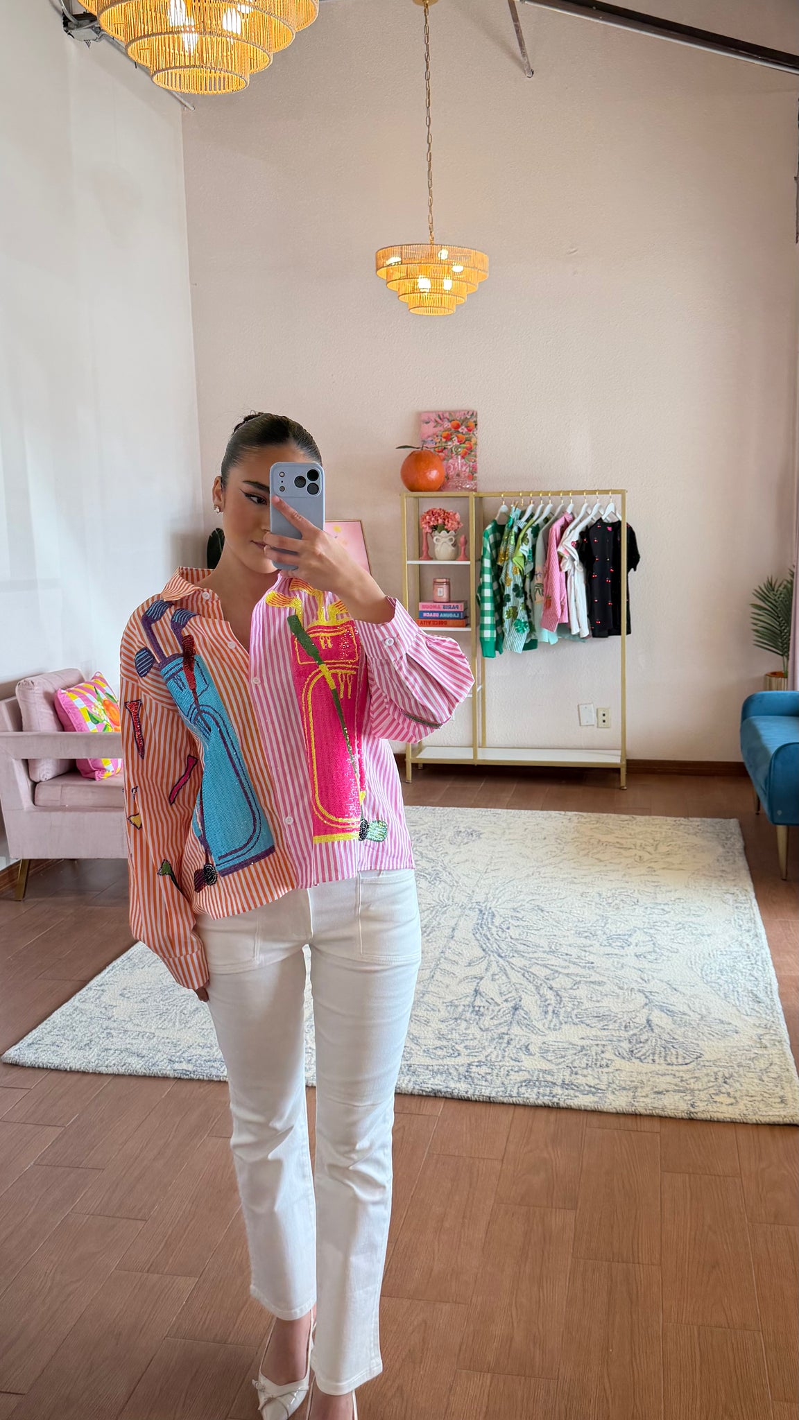 Elevate your golf game with the Queen of Sparkles Pink and Orange Striped Colorblock Golf Clubs. These eye-catching clubs feature a vibrant striped design that combines pink and orange hues for a bold, fashion-forward look on the course.