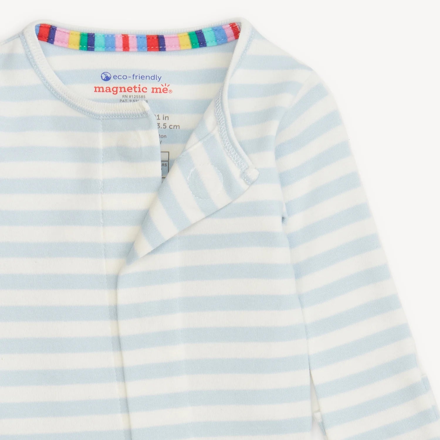 Keep your little one snug and smiling in the Magnetic Me Organic Cotton Footie in Blue Stripe. Made from soft organic cotton, this footie feels gentle on sensitive skin and keeps tiny toes cozy. Thanks to clever magnetic closures, dressing becomes a breeze! The playful blue stripes add a dash of fun to naptime or playtime, making this footie a delightful everyday essential.