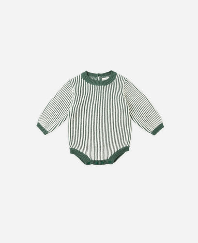 RYLEE + CRU CREWNECK ROMPER- BURGUNDY STRIPE