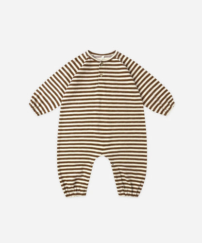 Rylee + Cru Henley Jumpsuit- Brown Stripe