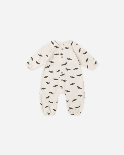 Quincy Mae Waffle Long Sleeve Jumpsuit- Bats